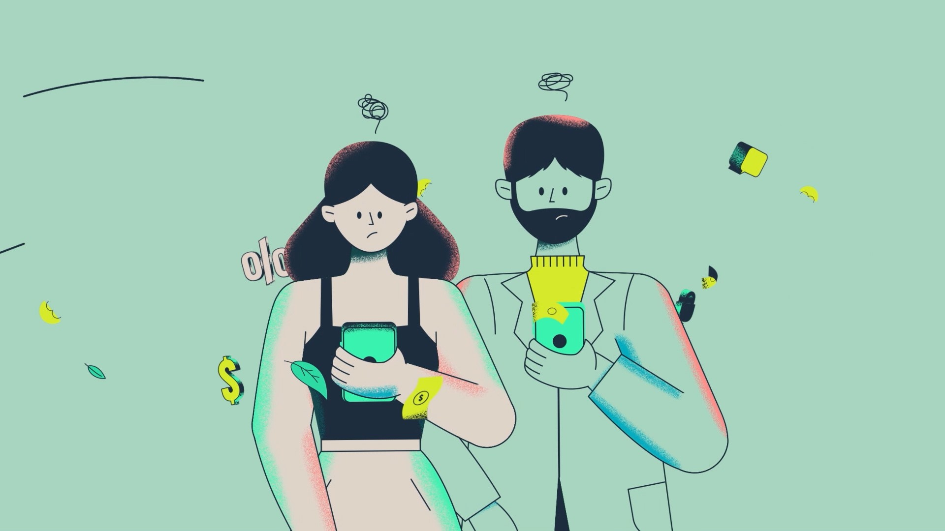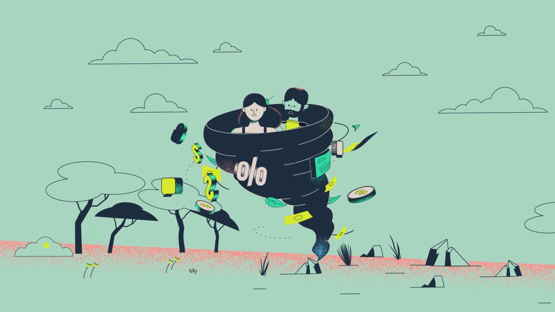 The creative concept centered on showcasing the app's friendly and intuitive design. It used a mix of adult characters and nature elements to bring quiet and tranquility after the chaotic start-up scene.